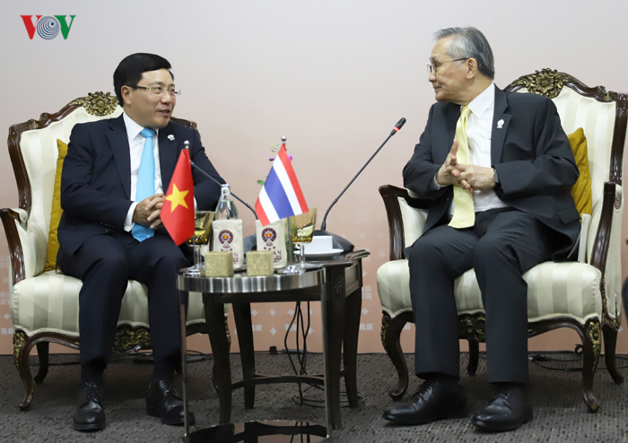 ในการพบปะกับรัฐมนตรีต่างประเทศไทย ดอน ปรมัตถ์วินัย นาย ฝ่ามบิ่งมิงห์ได้ยืนยันว่า เวียดนามสนับสนุนไทยปฏิบัติหน้าที่ประธานอาเซียนปี 2019 รัฐมนตรีทั้งสองท่านได้เห็นพ้องเสร็จสิ้นแผนปฏิบัติการระยะปี 2019-2024 ของความสัมพันธ์หุ้นส่วนยุทธศาสตร์เวียดนาม – ไทย อำนวยความสะดวกให้แก่การค้าและการลงทุนเพื่อบรรลุมูลค่าการค้าต่างตอบแทน 2 หมื่นล้านดอลลาร์สหรัฐภายในปี 2020 และปรับปรุงดุลการค้าระหว่างสองประเทศ