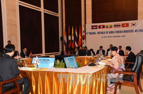 (VOVworld) – เมื่อบ่ายวันที่ 24 กรกฎาคม นอกรอบการประชุมรัฐมนตรีต่างประเทศอาเซียนหรือเอเอ็มเอ็มครั้งที่ 49 ณ กรุงเวียงจันทน์ ประเทศลาว ได้มีการจัดการประชุมรัฐมนตรีต่างประเทศลุ่มแม่น้ำโขง-สาธารณรัฐเกาหลีครั้งที่ 6 ภายใต้อำนวยการของนาย ปรัก สุคน รัฐมนตรีต่างประเทศกัมพูชาและนาย ยุน บยอง เซ รัฐมนตรีต่างประเทศสาธารณรัฐเกาหลี โดยมีรัฐมนตรีต่างประเทศของเวียดนาม ลาว เมียนมาและไทยเข้าร่วม คณะผู้แทนเวียดนามนำโดยนาย ฝ่ามบิ่งมิงห์ รองนายกรัฐมนตรีและรัฐมนตรีต่างประเทศได้เข้าร่วมการประชุมดังกล่าว