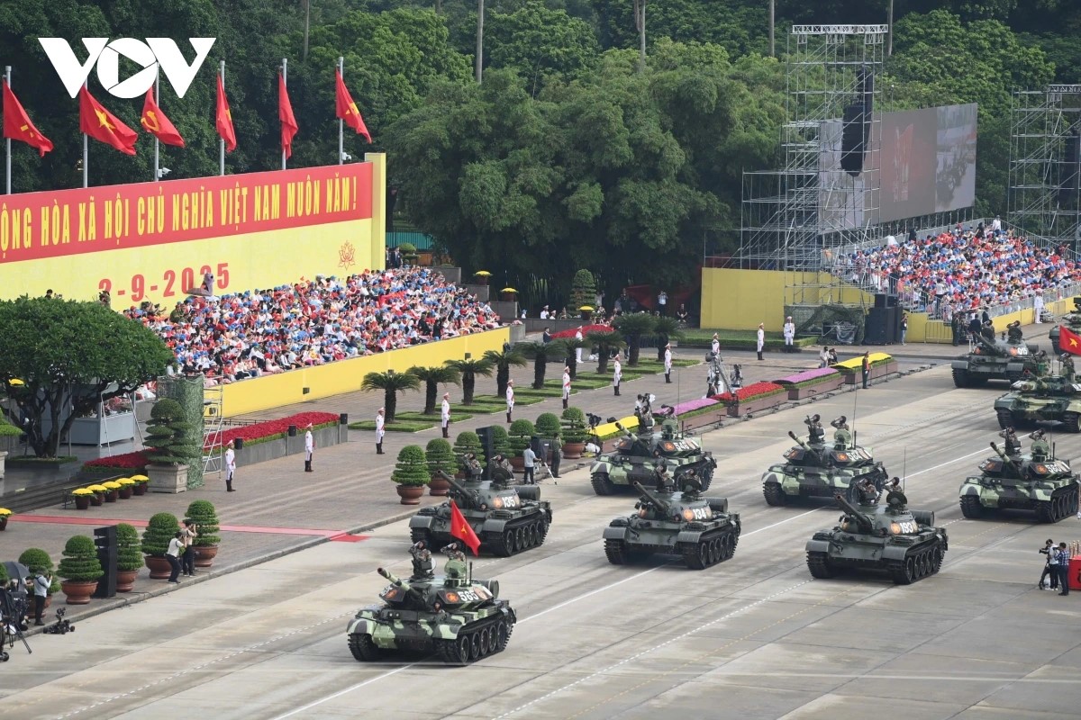 ในการเดินขบวนพาเหรดผ่านจัตุรัสบาดิ่งห์ มีหน่วยทหารของกองทัพเวียดนาม 26 หน่วย กองกองทหารต่างประเทศ คือจีน สหพันธรัฐรัสเซีย ลาวและกัมพูชา กองกำลังทหารบ้าน กองกำลังตำรวจ 17 หน่วย เป็นต้น พร้อมทั้งมีการถ่ายทอดสดการซ้อมสวนสนามทางทะเลจากฐานทัพเรือกามแรงในจังหวัดแค้งหว่า