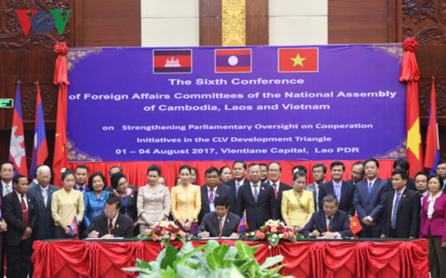 ภายหลังการประชุมเป็นเวลา 2 วัน เมื่อวันที่ 3 สิงหาคม ณ กรุงเวียงจันทน์ ประเทศลาว การประชุมครั้งที่ 6 คณะกรรมาธิการวิเทศสัมพันธ์แห่งรัฐสภากัมพูชา ลาวและเวียดนามในหัวข้อ “ผลักดันการตรวจสอบของรัฐสภาต่อการปฏิบัติความคิดริเริ่มเกี่ยวกับความร่วมมือในเขตสามเหลี่ยมพัฒนากัมพูชา-ลาวและเวียดนาม”ได้เสร็จสิ้นลง โดยที่ประชุมได้ออกแถลงการณ์ร่วมที่ยํ้าว่า คณะกรรมาธิการวิเทศสัมพันธ์แห่งรัฐสภากัมพูชา ลาวและเวียดนามจะร่วมมือกันอย่างใกล้ชิดเพื่อผลักดันบทบาทของรัฐสภาในการปฏิบัติข้อตกลงและความคิดริเริ่มต่างๆที่ผู้นำทั้ง 3 ประเทศได้ลงนามบนพื้นฐานของความสัมพันธ์มิตรภาพที่มีมาช้านานและความร่วมมือระยะยาว