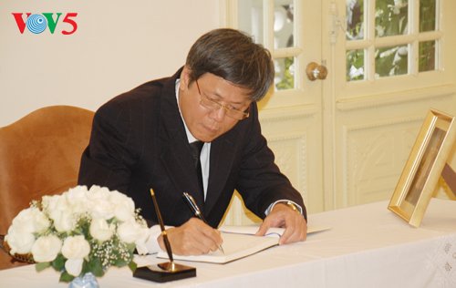 ![]() นาย หวูหาย รองประธานสถานีวิทยุเวียดนามลงนามถวายความอาลัย
