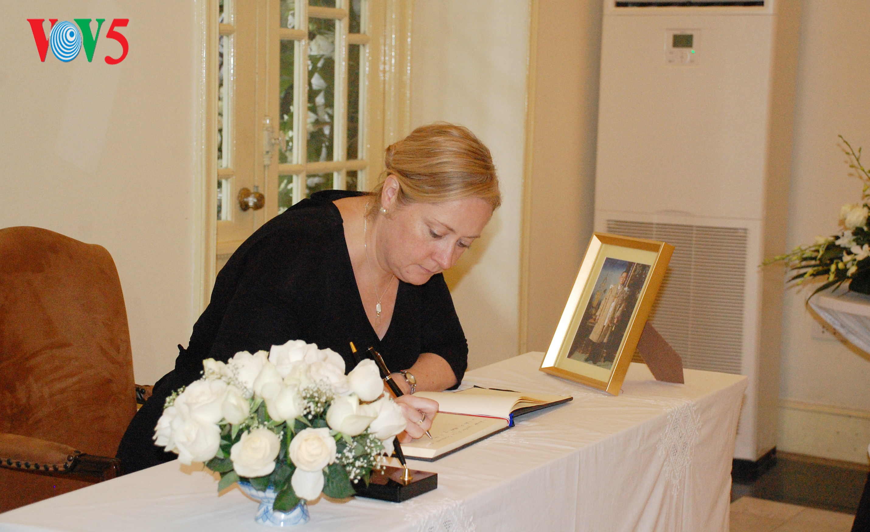![]() ตัวแทนจากสถานทูตฝรั่งเศสประจำเวียดนามลงนามถวายความอาลัย