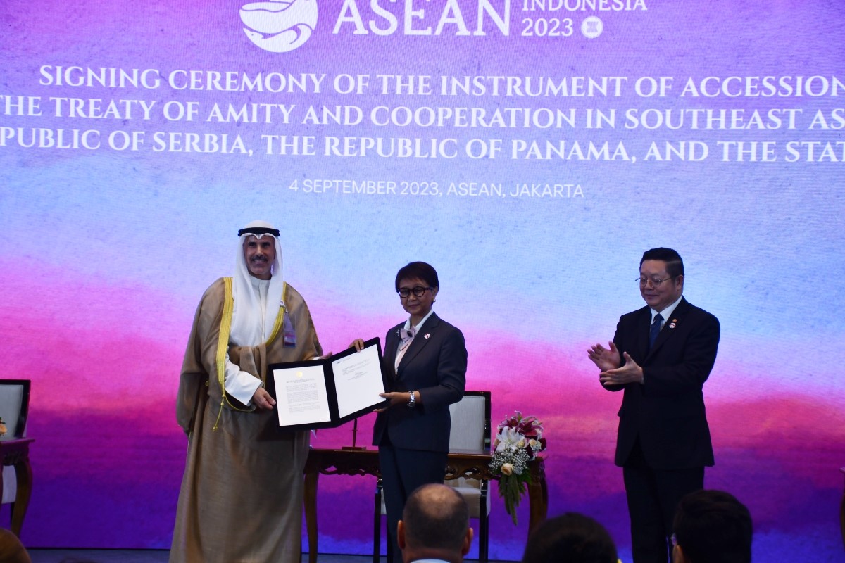 ในกรอบการประชุมผู้นำอาเซียนและการประชุมต่างๆที่เกี่ยวข้อง ณ กรุงจากาตาร์ ประเทศอินโดนีเซีย ประเทศสมาชิกอาเซียนได้เป็นสักขีพยานในการลงนามเอกสารว่าด้วยการเข้าร่วมสนธิสัญญามิตรภาพและความร่วมมือในเอเชียตะวันออกเฉียงใต้ (TAC) ของ 3 ประเทศ คือคูเวต เซอร์เบีย และปานามา ทำให้จำนวนสมาชิกสนธิสัญญาดังกล่าวเพิ่มขึ้นเป็น 54 ประเทศ TAC เป็นหลักปฏิบัติเกี่ยวกับความสัมพันธ์ระหว่างประเทศต่างๆในภูมิภาค ผลักดันการรักษาสันติภาพ ความสัมพันธ์มิตรภาพและความร่วมมือ
