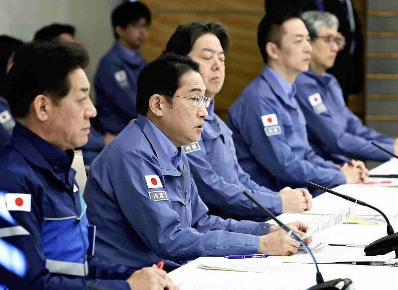 นายกรัฐมนตรีญี่ปุ่น ฟูมิโอะ คิชิดะ (ที่สองจากซ้าย) ในการประชุม ณ สำนักนายกรัฐมนตรีในกรุงโตเกียวเมื่อวันที่ 2 มกราคมปี 2024 (The Yomiuri Shimbun) |
