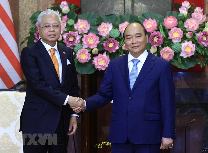 นายกรัฐมนตรีมาเลเซีย ดาโต๊ะซารี อิสมาอิล ซาบรี บิน ยาค็อบและประธานประเทศ เหงวียนซวนฟุก (Photo: TTXVN) |