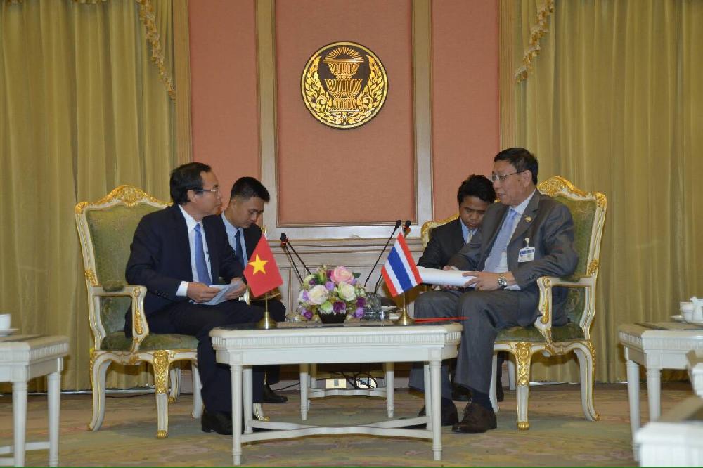 (VOVworld)-เช้าวันที่18พฤษภาคมในโอกาสเยือนประเทศไทยและเข้าร่วมพิธีเปิดอนุสรณ์สถานประธานโฮจิมินห์ที่จังหวัดนครพนมระหว่างวันที่18-20เดือนนี้ นายเหงวียนวันเน็น สมาชิกคณะเลขาธิการกลางพรรคคอมมิวนิสต์เวียดนามและหัวหน้าสำนักคณะกรรมการกลางพรรคฯได้มีการพบปะกับศาสตราจารย์พิเศษ พรเพชร วิชิตชลชัย ประธานสภานิติบัญญัติแห่งชาติไทย โดยได้กล่าวยืนยันว่าพรรค รัฐและประชาชนเวียดนามจะพยายามอย่างสุดความสามารถเพื่อนำความสัมพันธ์หุ้นส่วนยุทธศาสตร์เวียดนาม-ไทยพัฒนาอย่างต่อเนื่อง ส่วนประธานสภานิติบัญญัติแห่งชาติไทยได้ชื่นชมส่วนร่วมที่เข้มแข็งของชมรมชาวเวียดนามในประเทศไทยที่ได้กลายเป็นสะพานเชื่อมสำคัญให้แก่การพัฒนาความสัมพันธ์ร่วมมือในหลายด้านระหว่างสองประเทศพร้อมทั้งแสดงความยินดีเมื่อได้มีการเปิดตัวอนุสรณ์สถานประธานโฮจิมินห์ที่นครพนมในโอกาสรำลึกครบรอบ126ปีวันคล้ายวันเกิดของประธานโฮจิมินห์และครบรอบ40ปีการสถาปนาความสัมพันธ์ทางการทูตเวียดนาม-ไทย