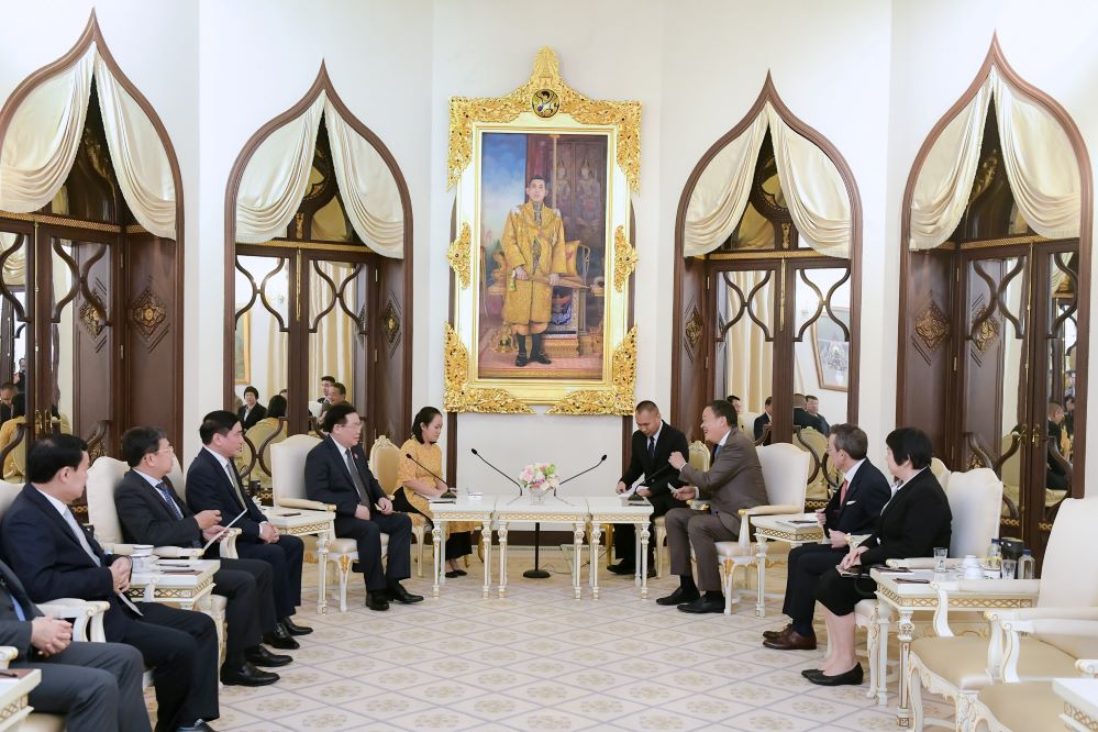 ประธานสภาแห่งชาติ เวืองดิ่งเหวะได้พบปะกับนาย เศรษฐา ทวีสิน นายกรัฐมนตรีไทย |
