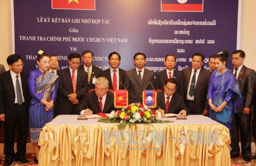 ![]() นาย ฟานวันเซ้า หัวหน้าตรวจตราของรัฐบาลเวียดนาม (ซ้าย) และนายบุญทอง จิตธมานี รองนากยกรัฐมนตรีลาวและหัวหน้าคณะกรรมการตรวจตราส่วนกลางลาวลงนามบันทึกช่วยจำเพื่อความร่วมมือ (Photo: VNA)