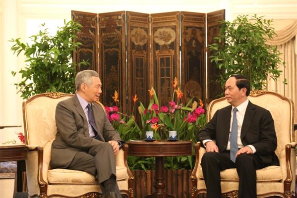 ในวันเดียวกัน ประธานประเทศเจิ่นด่ายกวางได้มีการพบปะหารือกับนายกรัฐมนตรีสิงคโปร์ ลี เซียน ลุง โดยนายลีเซียนลุงได้แสดงความเชื่อมั่นว่า การเยือนครั้งนี้จะมีส่วนร่วมเสริมสร้างความสัมพันธ์หุ้นส่วนยุทธศาสตร์ในทุกด้านให้ลึกซึ้งยิ่งขึ้น ยืนยันสนับสนุนเวียดนามจัดการประชุมผู้นำฟอรั่มความร่วมมือด้านเศรษฐกิจเอเชียแปซิฟิกหรือเอเปกในปี 2017 ประสบความสำเร็จ