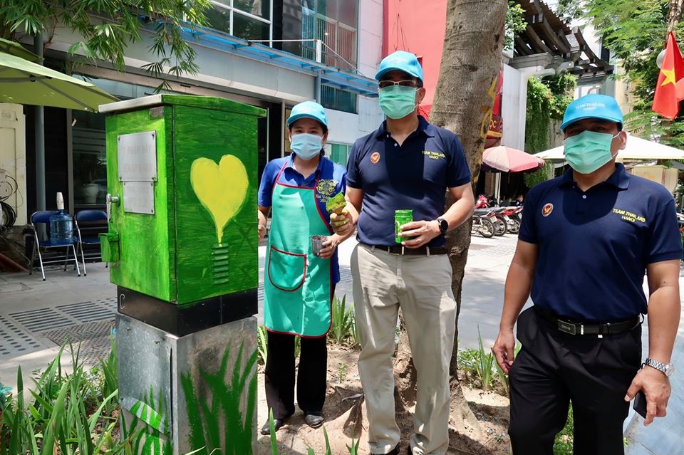 ผู้เข้าร่วมกิจกรรมรวม ๓๐ คน เป็นเด็กและเยาวชน อายุระหว่าง ๔ – ๒๓ ปี ได้ดำเนินกิจกรรมจิตอาสาเพื่อสาธารณประโยชน์ฯ โดยทำความสะอาด วาดภาพระบายสีตู้ไฟฟ้าที่อยู่ภายนอกสถานเอกอัครราชทูตฯ ที่สะท้อนความสัมพันธ์ระหว่างไทย-เวียดนาม สถานที่สำคัญที่เป็นสัญลักษณ์ของทั้งสองประเทศ