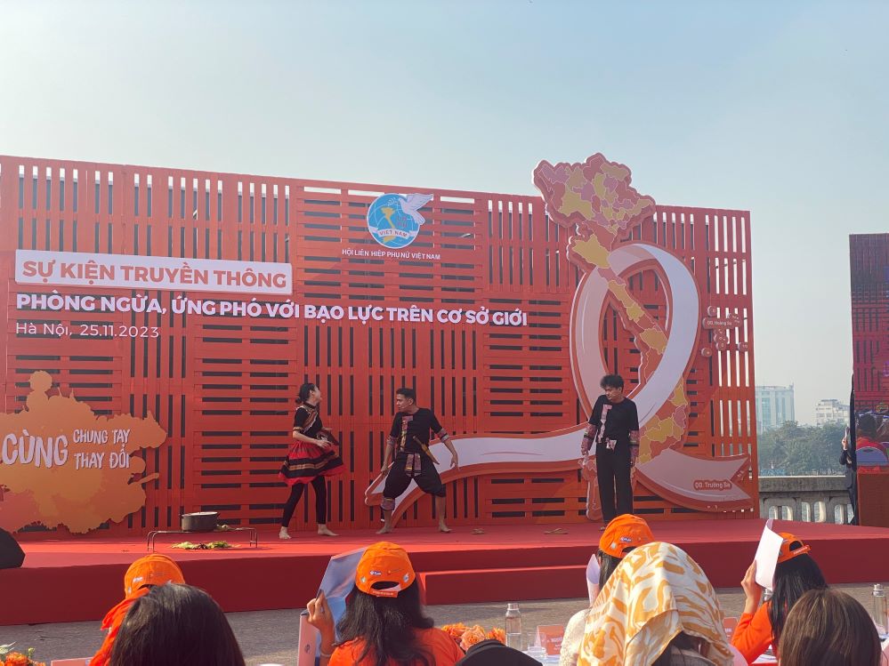 ในการกล่าวปราศรัยในงาน นาง ห่าถิงา ประธานสหพันธ์สตรีเวียดนามเผยว่า" เราเรียกร้องให้สตรีทั่วประเทศและท่านทั้งหลายกล่าวหาถ้าหากถูกใช้ความรุนแรงหรือเห็นใครถูกใช้ความรุนแรง ให้ความเคารพทุกเพศ โดยเฉพาะสตรีและเด็ก ขจัดอคติที่เป็นแรงกดดันให้แก่สตรี ขอให้หน่วยงานทุกระดับและองค์การต่างๆ ระดมแหล่งพลังเพื่อร่วมแรงร่วมใจป้องกันและรับมือการใช้ความรุนแรงทางเพศ ตั้งใจแก้ไขกรณีการใช้ความรุนแรงและล่วงละเมิดทางเพศต่อสตรีและเด็กหญิง"