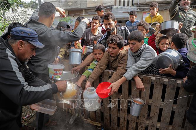 ประชาชนได้รับความช่วยเหลือด้านอาหารในเมืองราฟาห์ ฉนวนกาซา เมื่อวันที่ 19 พฤศจิกายน2023 (THX) |