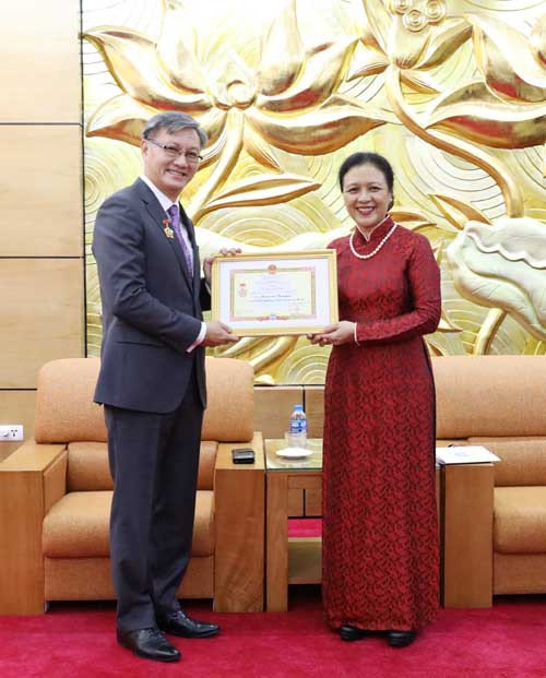 ในการนี้ เอกอัครราชทูตเหงวียนเฟืองงา ประธานสหพันธ์องค์การมิตรภาพเวียดนามได้ย้ำว่า ในวาระการปฏิบัติงานในเกือบ4ปีที่ผ่านมา นาย ทองสะหวัน พมวิหาร ได้พยายามกระชับความสัมพันธ์มิตรภาพที่ยิ่งใหญ่ ความสามัคคีพิเศษและความร่วมมือในทุกด้านระหว่างประชาชนทั้ง 2 ประเทศและทั้ง 2 ฝ่ายได้ประสบความสำเร็จในการจัดกิจกรรมปีสามัคคีและมิตรภาพเวียดนาม-ลาว ลาว-เวียดนาม 2017 พร้อมทั้งแสดงความเชื่อมั่นว่า ไม่ว่าจะอยู่ใน