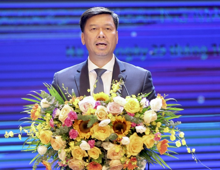 นาย โงมิงห์เหียน รองประธานสถานีวิทยุเวียดนามกล่าวปราศรัยในพิธี |