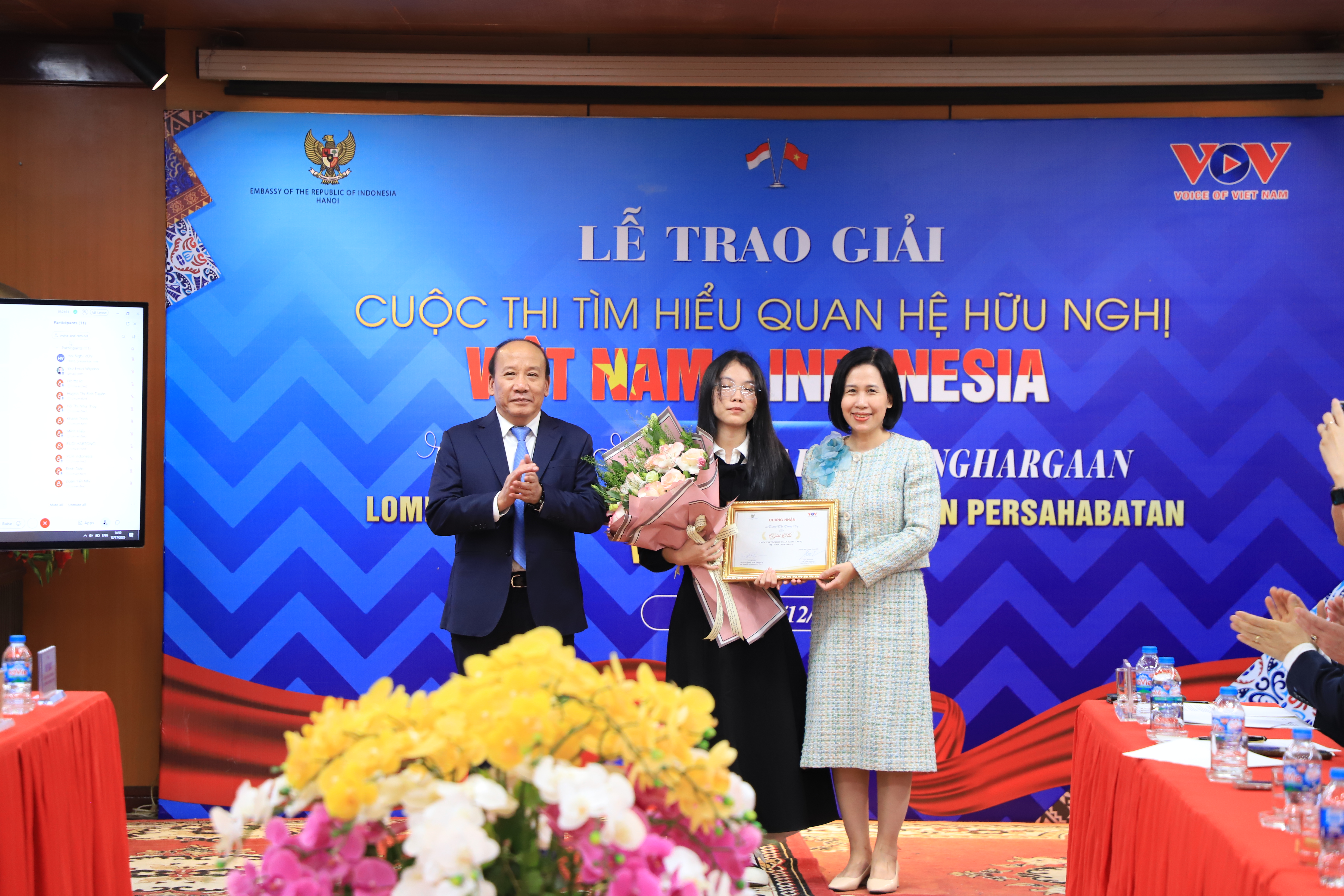 นาย โง มินห์ เหียน รองผู้อำนวยการใหญ่สถานีวิทยุเวียดนาม กล่าวในพิธีมอบรางวัลว่า การประกวดครั้งนี้จัดขึ้นเพื่อส่งเสริมความเข้าใจในความสัมพันธ์ร่วมมือระหว่างเวียดนามและอินโดนีเซียและมุ่งส่งเสริมความผูกพันระหว่างประชาชนของทั้งสองประเทศ โดยเฉพาะอย่างยิ่งคนรุ่นใหม่ พิธีมอบรางวัลเป็นโอกาสยกย่ององค์ความรู้ การใส่ใจอย่างจริงจัง และมุมมองที่หลากหลายของผู้เข้าร่วมแข่งขันเกี่ยวกับมิตรภาพอันยาวนานระหว่างเวียดนามและอินโดนีเซีย งานนี้ยังเป็นการยืนยันบทบาทของสถานีวิทยุเวียดนามในการส่งเสริมความร่วมมือแลกเปลี่ยนด้านสื่อและเสริมสร้างความเข้าใจระหว่างประชาชนของทั้งสองประเทศ เราเชื่อว่าเมื่อสื่อ วัฒนธรรม และความรู้ได้รับการเผยแพร่ มิตรภาพและความร่วมมืออย่างเป็นรูปธรรมในด้านต่างๆ จะมีพื้นฐานที่แข็งแกร่งยิ่งขึ้นในการพัฒนา