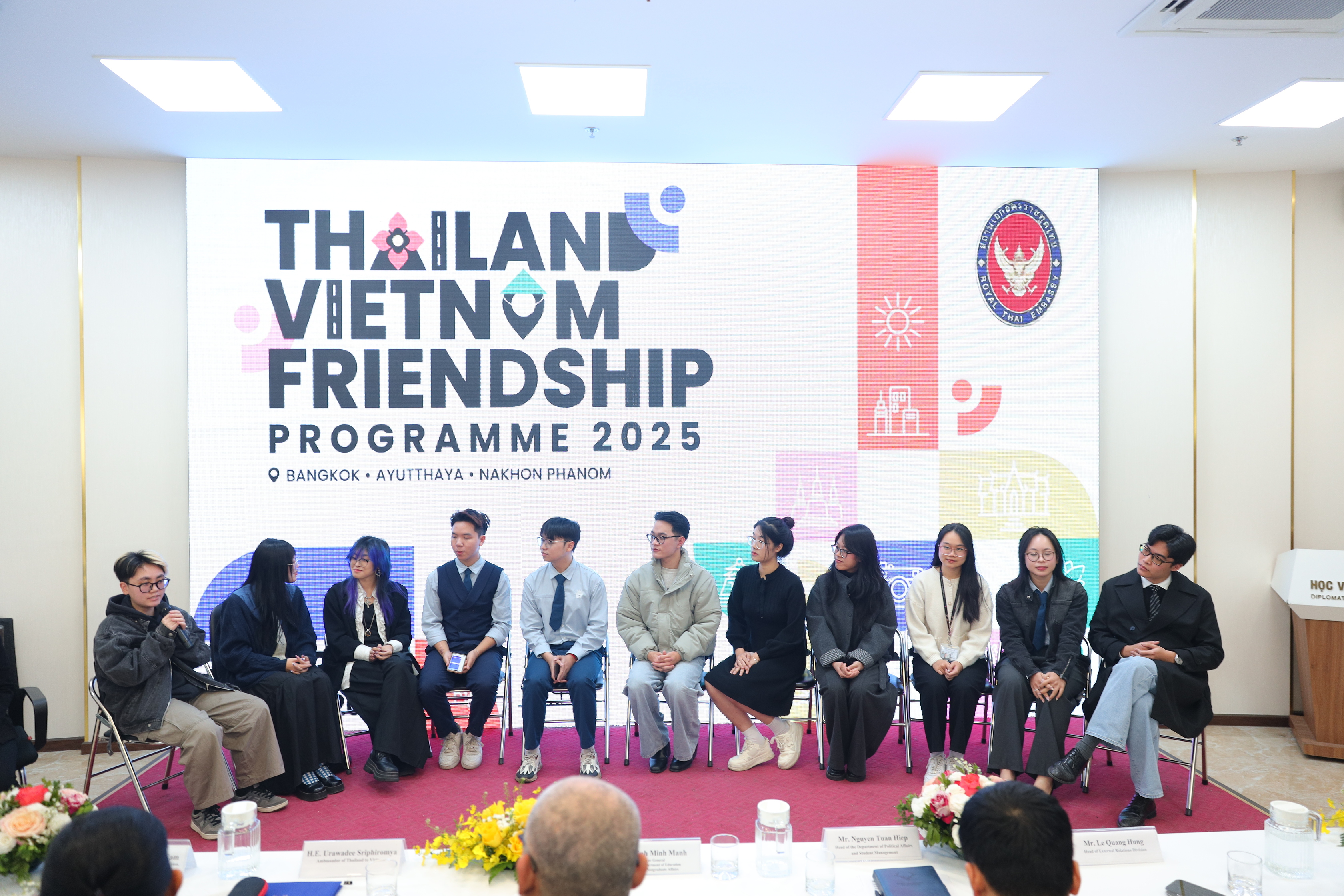 ในการนี้ น.ส.อุรวดี ศรีภิรมย์ เอกอัครราชทูตไทย ณ กรุงฮานอยได้ย้ำว่า “เป้าหมายของกิจกรรมก็คือการเชื่อมโยงระหว่างมิตรภาพของเด็กไทยกับเด็กเวียดนาม เราเชิญคนรุ่นใหม่ของเวียดนามไปเยือนประเทศไทยเพื่อที่จะได้เห็นและเข้าใจความเป็นไทย ในขณะเดียวกันก็เข้าใจถึงสายสัมพันธ์ของทั้งสองประเทศ ซึ่งมีมาอย่างแน่นแฟ้น ดังจะได้เห็นแล้วว่า ทางน้องๆเวียดนามก็ได้ไปเยือนบ้านของท่านประธานโฮจิมินห์ ซึ่งอยู่ที่นครพนม เราก็ต้องการเสริมสร้างความเข้าใจวัฒนธรรม ในขณะเดียวกันก็ส่งเสริมให้น้องๆเวียดนามนำวัฒนธรรมเวียดนามไปสู่น้องๆชาวไทยให้เขาเข้าใจและรู้จัก”