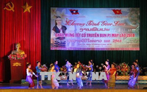 ในการนี้ นักศึกษาลาวได้เข้าร่วมการพบปะแลกเปลี่ยนวัฒนธรรม การร้องรำทำเพลง กิจกรรมกีฬาการสาดน้ำและผูกข้อมือขอให้ปีใหม่ประสบความสุขและความโชคดี.