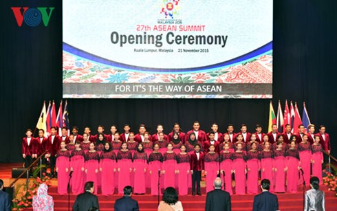 ( VOVworld )-การประชุมผู้นำประเทศสมาชิกสมาคมประชาชาติเอเชียตะวันออกเฉียงใต้หรืออาเซียนครั้งที่ ๒๗ ได้เปิดขึ้น ณ ศูนย์การประชุมนานาชาติ กรุงกัวลาลัมเปอร์ ประเทศมาเลเซีย เมื่อเช้าวันที่ ๒๑ ที่ผ่านมา โดยท่านเหงวียน เติ้น หยุงนายกฯเวียดนามพร้อมกับบรรดาผู้นำประเทศอาเซียนและผู้นำจีน ญี่ปุ่น สาธารณรัฐเกาหลี อินเดีย ออสเตรเลีย นิว ซีแลนด์ รัสเซีย สหรัฐและนายโคฟี อันนัน เลขาธิการใหญ่สหประชาชาติได้เข้าร่วมพิธีเปิดและการประชุมครบองค์ผู้นำอาเซียนครั้งที่ ๒๗ โอกาสนี้ ท่านเหงวียน เติ้น หยุงนายกฯเวียดนามได้กล่าวปราศรัยโดยย้ำว่า การก่อตั้งประชาคมอาเซียนในปี ๒๐๑๕มีความหมายทางประวัติศาสตร์ ซึ่งสะท้อนความเข้าใจและความตั้งใจของประเทศสมาชิกสมาคมประชาชาติเอเชียตะวันออกเฉียงใต้หรืออาเซียนในการยกระดับความร่วมสัมพันธ์และความร่วมมือขึ้นสู่ขั้นสูงใหม่ อีกทั้งแสดงให้เห็นถึงความเติบโตของอาเซียนในตลอด ๔๘ ปีที่ผ่านมาอย่างรวดเร็ว ตลอดจนเป็นการยืนยันถึงคุณค่าแห่งความสามัคคี ความเป็นหนึ่งเดียวและบทบาทการเป็นศูนย์กลางขององค์การอาเซียน สำหรับการพัฒนาองค์การอาเซียนในเวลาต่อไป นายกฯเหงวียน เติ้น หยุงได้แสดงความคิดเห็นว่า ความเห็นชอบวิสัยทัศน์อาเซียนปี ๒๐๒๕และแผนการรายละเอียดเกี่ยวกับการปฏิบัติในการประชุมครั้งนี้จะกำหนดทิศทางและอำนวยเงื่อนไขให้แก่อาเซียนในการร่วมสัมพันธ์อย่างกว้างลึกและมีบทบาทสำคัญมากขึ้นในภูมิภาค นายกฯเวียดนามได้ย้ำถึงประเด็นที่ได้รับความสนใจเป็นอันดับต้นๆของอาเซียนได้แก่ มาตรการและแหล่งพลังต่างๆเพื่อปฏิบัติวิสัยทัศน์อาเซียนปี ๒๐๒๕และแผนรวมตามสามเสาหลักประกอบด้วย ความมั่นคงกับการเมือง เศรษฐกิจและวัฒนธรรมกับสังคมอย่างมีประสิทธิภาพ การขยายความสามัคคี ความเห็นพ้องในจุดยืน การยกระดับทักษะความสามารถ การส่งเสริมบทบาทการเป็นศูนย์กลางของอาเซียน ตลอดจนการเห็นด้วยกับการแก้ไขปัญหาความท้าทายครั้งใหญ่ต่อสันติภาพ ความมั่นคงและการพัฒนาในภูมิภาค เช่นเดียวกับในความสัมพันธ์กับประเทศคู่เจรจา เน้นถึงการธำรงสันติภาพละความมีเสถียรภาพในภูมิภาค