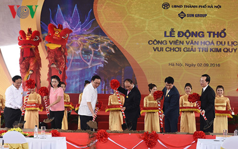 (VOVworld) – เช้าวันที่ 2 กันยายน คณะกรรมการประชาชนกรุงฮานอยและกลุ่มบริษัท Sun Group ได้จัดพิธีวางศิลาฤกษ์ก่อสร้างสวนสาธารณะวัฒนธรรม การท่องเที่ยวและบรรเทิง กีมกวี หรือสวนสาธารณะ กีมกวี ในตำบล หวิงหงอก อำเภอ โดงแอง กรุงฮานอย โดยมีท่าน เหงียนซวนฟุก นายกรัฐมนตรี นาย หว่างจุงหมาย เลขาธิการพรรคสาขากรุงฮานอยพร้อมผู้บริหารของกระทรวงและหน่วยงานส่วนกลางเข้าร่วม