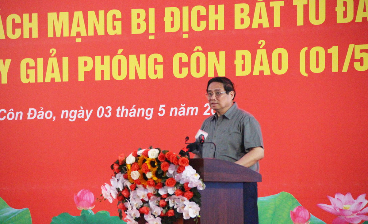 เนื่องในโอกาสรำลึกครบรอบ 50 ปีวันปลดปล่อยภาคใต้ รวมประเทศเป็นเอกภาพและรำลึกครบรอบ 50 ปีวันปลดปล่อยเกาะ โกนด๋าว เช้าวันที่ 3 พฤษภาคม ณ วิหารบูชาวีรชนและทหารพลีชีพเพื่อชาติโกนด๋าวในสุสานห่างเยืองและสุสานห่างแกวในอำเภอเกาะ โกนด๋าว จังหวัดบ่าเหรียะ หวุงเต่า นายกรัฐมนตรี ฝ่ามมิงชิ้งและคณะผู้แทนได้เข้าร่วมพิธีจุดธูปและเคารพศพวีระชนและทหารพลีชีพเพื่อชาติ