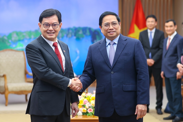 นายกรัฐมนตรี ฝ่ามมิงชิ้งได้ให้การต้อนรับนาย Heng Swee Keat รองนายกรัฐมนตรีและรัฐมนตรีว่าการกระทรวงประสานงานด้านนโยบายเศรษฐกิจสิงคโปร์ (VGP) |
