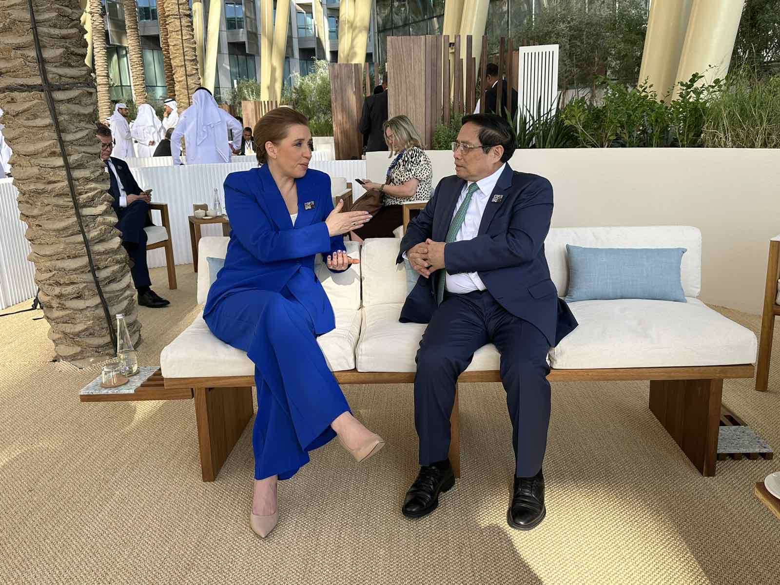 นอกรอบการประชุมสุดยอดว่าด้วยการดำเนินการด้านสภาพภูมิอากาศในกรอบการประชุมรัฐภาคีกรอบอนุสัญญาของสหประชาชาติเกี่ยวกับการเปลี่ยนแปลงสภาพภูมิอากาศครั้งที่ 28 หรือ COP 28 เมื่อบ่ายวันที่ 1 ธันสาคม เมืองดูไบ ประเทศสหรัฐอาหรับเอมิเรตส์ นายกรัฐมนตรี ฝ่ามมิงชิ้งได้พบปะกับผู้นำประเทศเนเธอร์แลนด์ เดนมาร์ก สหรัฐอาหรับเอมิเรตส์ นอร์เวย์ อินเดีย มองโกเลีย แซมเบีย กองทุนการเงินระหว่างประเทศ (IMF) องค์การการค้าโลก (WTO) นาย โทนี่ แบลร์ อดีตนายกรัฐมนตรีอังกฤษ และนาย จอห์น เคอร์รี ทูตพิเศษด้านสภาพอากาศของประธานาธิบดีสหรัฐ