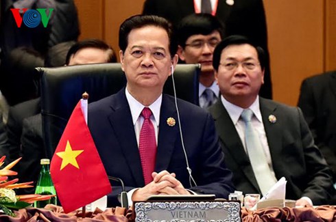 (VOVworld) – เมื่อเช้าวันที่ 22 พฤศจิกายน ณ กรุงกัวลาลัมเปอร์ ประเทศมาเลเซีย ท่านเหงียนเติ๊นหยุง นายกรัฐมนตรีเวียดนามและบรรดาผู้นำอาเซียนได้เข้าร่วมการประชุมสุดยอดเอเชียตะวันออกหรืออีเอเอสครั้งที่ 10 โดยบรรดาผู้นำได้อนุมัติปฏิญญาฉลองครบรอบ 10 ปีการประชุมสุดยอดเอเชียตะวันออกและให้คำมั่นที่จะให้ความสนใจเป็นอันดับต้นๆต่อการผลักดันความร่วมมือใน 6 ด้าน ประกอบด้วย พลังงาน การศึกษา การเงิน สาธารณสุข สิ่งแวดล้อม การรับมือกับภัยธรรมชาติและการเชื่อมโยงอาเซียน ในการกล่าวปราศรัยในการประชุม ท่านเหงียนเติ๊นหยุงได้ย้ำว่า การรักษาสันติภาพ เสถียรภาพ ความมั่นคง ความปลอดภัยและเสรีภาพในการเดินเรือและการบินในทะเลตะวันออกเป็นผลประโยชน์และหน้าที่ของทุกประเทศทั้งภายในและนอกภูมิภาค เวียดนามมุ่งหวังที่จะเห็นการเข้าร่วมอย่างเข้มแข็งและสร้างสรรค์ของประเทศต่างๆเพื่อบรรลุเป้าหมายดังกล่าว นายกรัฐมนตรีเหงียนเติ๊นหยุงยังย้ำว่า เวียดนามจะทำอย่างสุดความสามารถเพื่อร่วมมือกับประเทศต่างๆรักษาทะเลตะวันออกให้เป็นภูมิภาคที่มีสันติภาพ เสถียรภาพและร่วมมือเพื่อการพัฒนา แก้ไขการพิพาทด้วยสันติวิธีตามกฎหมายสากล รวมทั้งอนุสัญญาของสหประชาชาติเกี่ยวกับกฎหมายทางทะเลปี 1982
