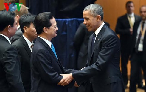 ส่วนในการพบปะกับประธานาธิบดีสหรัฐบารัค โอบาม่า นายกรัฐมนตรีเหงียนเติ๊นหยุงได้ยืนยันว่า เวียดนามมีความประสงค์ที่จะขยายความสัมพันธ์หุ้นส่วนในทุกด้านและมีประสิทธิภาพกับสหรัฐ พร้อมทั้งเรียกร้องให้สหรัฐมีส่วนร่วมมากขึ้นต่อการรักษาสันติภาพ เสถียรภาพและความเจริญรุ่งเรืองในภูมิภาค รวมทั้งในทะเลตะวันออก นายบารัคโอบาม่าได้เผยว่า สหรัฐและเวียดนามต้องประสานงานอย่างใกล้ชิดมากขึ้นเพื่ออนุมัติและปฏิบัติข้อตกลงทีพีพีอย่างมีประสิทธิภาพ สำหรับปัญหาในทะเลตะวันออก สหรัฐสนับสนุนจุดยืนของเวียดนามและเผยว่า เวียดนามและบรรดาประเทศอาเซียนต้องมีเสียงพูดร่วมกันและขยายความร่วมมือเพื่อแก้ไขการพิพาทด้วยสันติวิธีตามกฎหมายสากลและข้อตกลงฉบับต่างๆในภูมิภาค