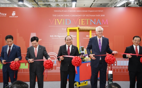 ในบ่ายวันเดียวกัน นายกรัฐมนตรีเหงียนซวนฟุ๊กและภาริยาได้เข้าร่วมพิธีตัดริบบิ้นเปิดสัปดาห์สินค้าเวียดนามในประเทศสิงคโปร์ที่มีขึ้นในระหว่างวันที่ 13-25 พฤศจิกายน โดยมีวัตถุประสงค์เพื่อประชาสัมพันธ์สินค้าการเกษตร สัตว์น้ำและเครื่องใช้ในครัวเรือนของเวียดนามต่อผู้บริโภคสิงคโปร์และชาวต่างชาติ.