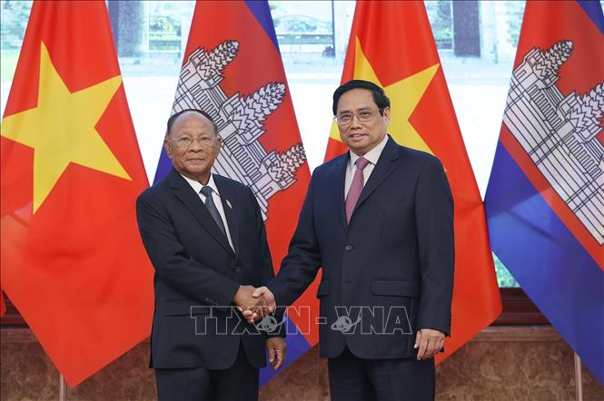 นายกรัฐมนตรีฝ่ามมิงชิ้ง ได้แสดงความยินดีต่อผลการเจรจาระหว่างสมเด็จเฮงสัมรินกับประธานสภาแห่งชาติเวืองดิ่งเหวะ ผลความร่วมมือระหว่างสภาแห่งชาติเวียดนามกับรัฐสภากัมพูชาในเวลาที่ผ่านมา และประเมินว่า การเยือนเวียดนามครั้งนี้ของสมเด็จเฮงสัมรินมีความหมายสำคัญในปีมิตรภาพเวียดนาม-กัมพูชา กัมพูชา-เวียดนาม2022และในโอกาสรำลึกครบรอบ 55 ปีการสถาปนาความสัมพันธ์ทางการทูตระหว่างสองประเทศ ชื่นชมส่วนร่วมของกัมพูชาในฐานะประธานอาเซียนและประธานไอป้าปี 2022 และแสดงความเชื่อมั่นว่า การประชุมผู้นำอาเซียนครั้งที่ 40 และ41 รวมทั้ง การประชุมสมัชชาใหญ่ไอป้าครั้งที่ 43 ณ กรุงพนมเปญในเดือนพฤศจิกายนนี้จะประสบความสำเร็จ.