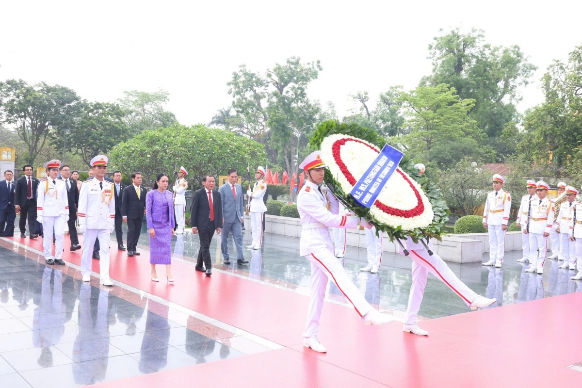 เช้าวันเดียวกัน นายกรัฐมนตรีไทยพร้อมคณะผู้แทนระดับสูงของรัฐบาลไทยก็ได้ไปวางพวงมาลาที่อนุสาวรีย์ทหารพลีชีพเพื่อชาติและเข้าเคารพศพประธานโฮจินห์