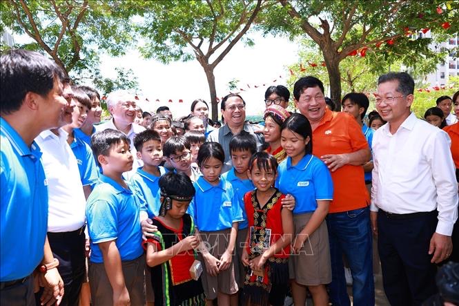 ส่วนในเที่ยงวันที่ 1 กันยายน นายกรัฐมนตรีฝ่ายมิงชิ้ง ได้ไปเยือนโรงเรียน Hope School นครดานัง ซึ่งเป็นโรงเรียนประจำที่ลงทุนโดยเครือบริษัทเอฟพีทีสำหรับเด็กด้อยโอกาสที่พ่อแม่เสียชีวิตเนื่องจากการแพร่ระบาดของโรคโควิด-19 ในการนี้ นายกรัฐมนตรีฝ่ามมิงชิ้งได้ยืนยันว่า พรรคและรัฐให้การดูแลเอาใจใส่ต่อภารกิจการพัฒนามนุษย์ โดยเฉพาะสำหรับผู้ที่ด้อยโอกาส ไม่แลกความยุติธรรม ความก้าวหน้า สวัสดิการสังคมและสิ่งแวดล้อมกับการขยายตัวของเศรษฐกิจ โดยถือมนุษย์เป็นศูนย์กลาง เป็นเจ้าของ เป็นแหล่งพลังและเป็นพลังขับเคลื่อนให้แก่การพัฒนา ตลอดจนแสดงความประสงค์ว่า นักเรียนในโรงเรียนฯ จะพยายามศึกษาและฝึกฝนหล่อหลอมตนเองเพื่อโตเป็นพลเรือนที่ดี ซึ่งมีส่วนร่วมต่อการพัฒนาของประเทศ