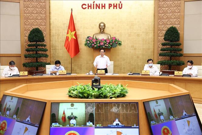 ในการกล่าวเปิดการประชุม นายกรัฐมนตรี ฝ่ามมิงชิ้ง ได้เผยว่า ในสภาวการณ์ที่โรคโควิด-19 เกิดการแพร่ระบาดระลอกที่ 4 นั้น เศรษฐกิจมหภาคยังคงมีเสถียรภาพ ภาวะเงินเฟ้อได้รับการควบคุม การป้องกันประเทศและความมั่นคงได้รับการรักษา งานด้านการต่างประเทศได้รับการผลักดัน การรับมือการแพร่ระบาดของโรคโควิด-19 ยังคงได้รับการส่งเสริม ในท้องถิ่น 23 แห่งที่ปฏิบัติการเว้นระยะห่างทางสังคมต้องให้ความสนใจเป็นอันดับต้นๆในการป้องกันและควบคุมการแพร่ระบาด ส่วนท้องถิ่นที่เหลืออีก 40 แห่งต้องให้ความสำคัญเป็นอันดับต้นๆต่อการประสานงานระหว่างความคล่องตัวในการพัฒนาเศรษฐกิจและสังคมกับการป้องกันและควบคุมการแพร่ระบาด โดยเฉพาะ รัฐบาลสั่งให้เปลี่ยนทิศทางในการป้องกันและควบคุมการแพร่ระบาดไปสู่การผสมผสานที่ลงตัวระหว่างการชี้นำทั่วไปและการกระจายอำนาจ โดยเน้นการชี้นำอย่างเข้มข้นและการกระจายอำนาจในการปฏิบัติงานภายใต้แนวทาง "แต่ละตำบล แขวง อำเภอเมืองเป็นป้อมปราการ ประชาชนทุกคนเป็นทหาร ประชาชนเป็นทั้งศูนย์กลางและปัจจัยหลักในการป้องกันและควบคุมการแพร่ระบาด"