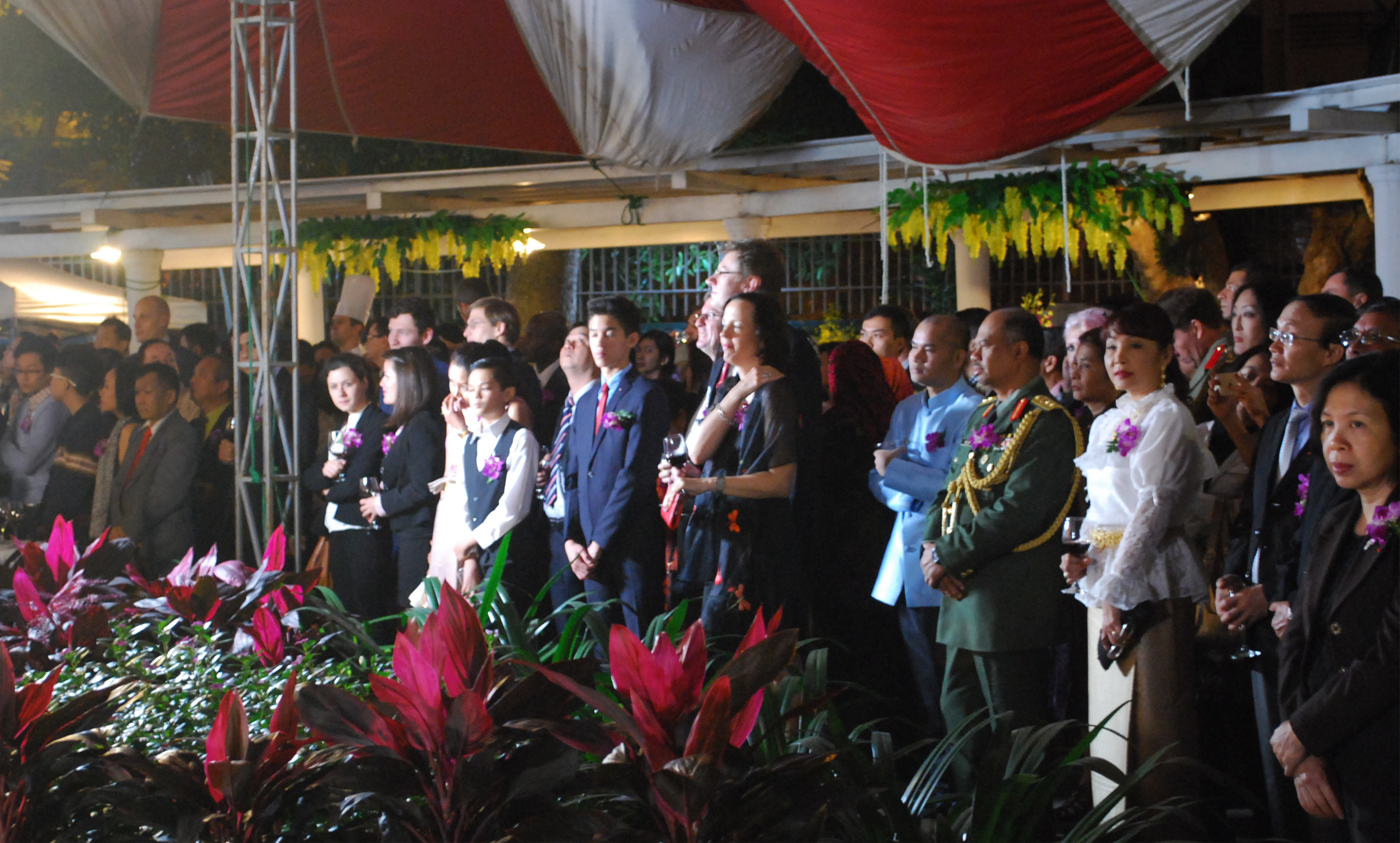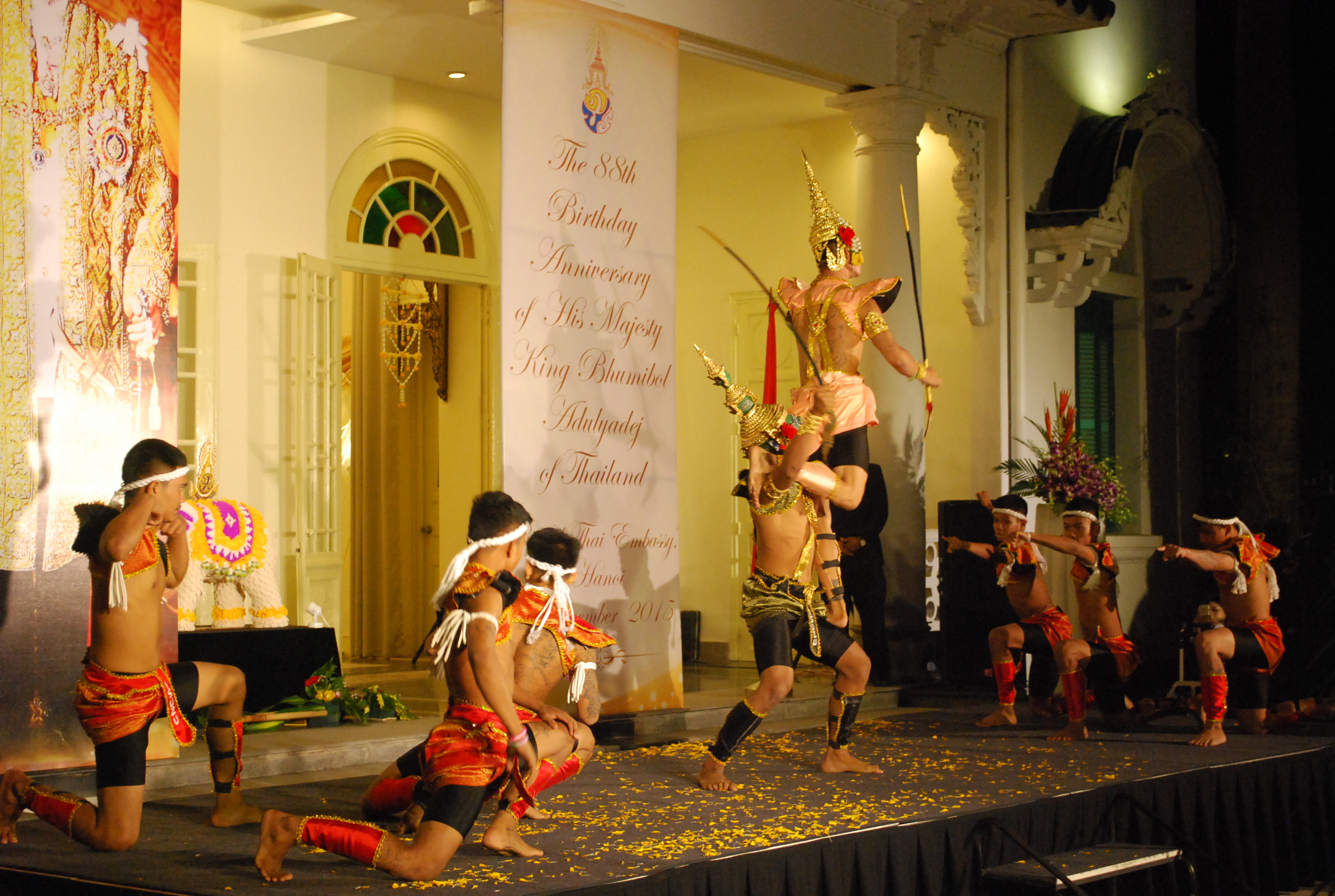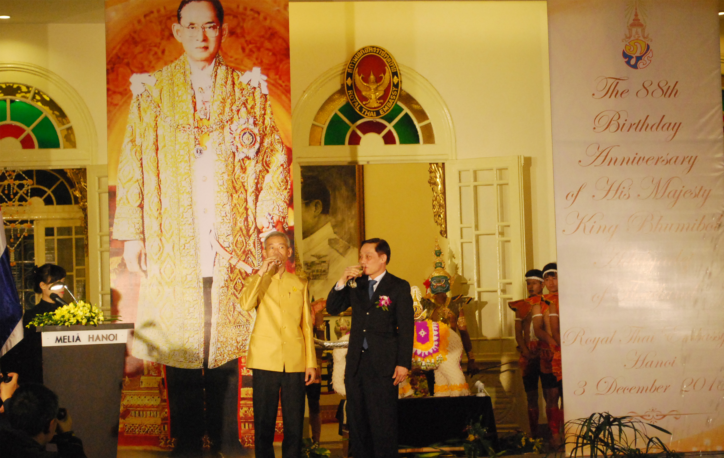 ส่วนเมื่อค่ำวันที่ 3 ธันวาคม ณ กรุงฮานอย สถานทูตไทยประจำเวียดนามได้จัดงานเฉลิมพระชนมพรรษาพระบาทสมเด็จพระเจ้าอยู่หัวครบ 88 พรรษาและวันชาติไทย 5 ธันวาคม โดยมีนายปัญญรักษ์ พูลทรัพย์ เอกอัครราชทูตไทยประจำเวียดนาม นายเลหว่ายจุง รัฐมนตรีช่วยว่าการกระทรวงการต่างประเทศ ชาวไทยที่อาศัยในประเทศเวียดนามและเพื่อนมิตรชาวต่างชาติเข้าร่วมเป็นจำนวนมาก ในการกล่าวปราศรัยในงาน นาย ปัญญรักษ์ พูลทรัพย์ได้ย้ำเป็นพิเศษถึงบทบาทสำคัญของความสัมพันธ์ที่นับวันพัฒนามากขึ้นระหว่างสองประเทศภายใต้หัวข้อ “ความสัมพันธ์ไทย -เวียดนามในการก้าวสู่ทศวรรษที่ 5 ของการเสริมสร้างความเข้มแข็งความเป็นหุ้นส่วนเชิงยุทธศาสตร์” พร้อมกับผลการประชุมระหว่างนายกรัฐมนตรีทั้งสองประเทศที่ได้วางแนวทางความสัมพันธ์ทวิภาคีในทุกด้านในอนาคต “ในปีหน้า ไทยและเวียดนามจะฉลองครบรอบ 40 ปีการสถาปนาความสัมพันธ์ทางการทูตและผู้นำทั้งสองประเทศยังถือว่า นี่คือโอกาสสำคัญมาก กิจกรรมการฉลองจะมีขึ้นในทั้งปีเพื่อเป็นการยืนยันถึงความสัมพันธ์มิตรภาพที่ใกล้ชิดระหว่างประชาชนทั้งสองประเทศ”