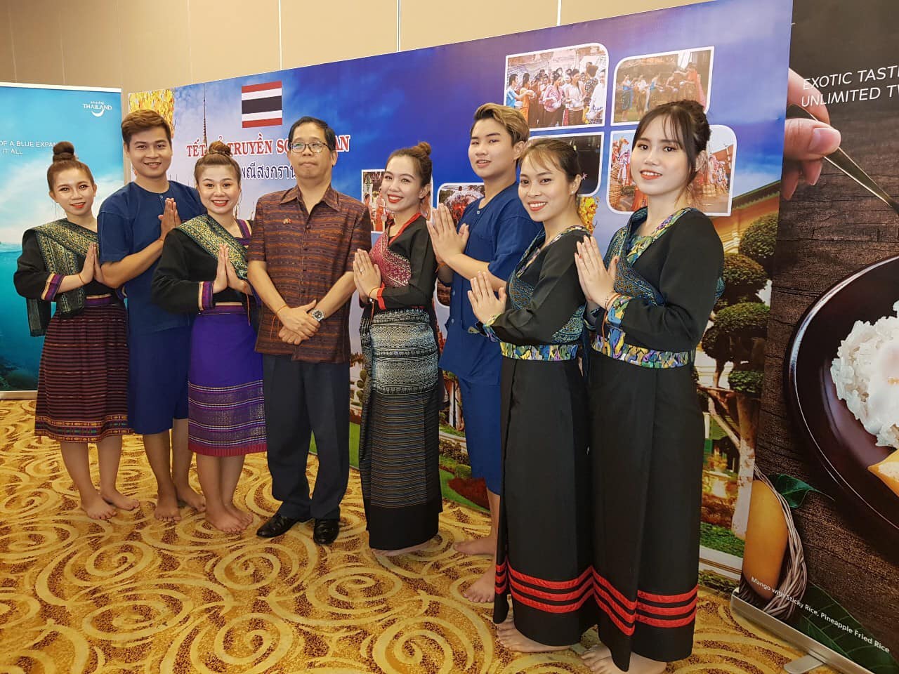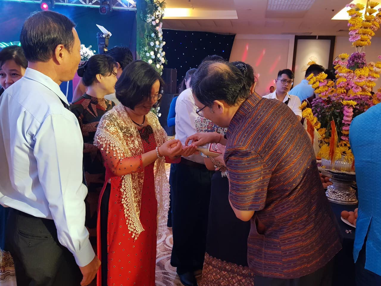 ในการนี้ นางพิมพา แก้วมีไซ กงสุลใหญ่ลาวได้เป็นผู้แทนกงสุลใหญ่ทั้ง 3 ประเทศ กล่าวขอบคุณในการจัดงานดังกล่าว หลังจากนั้นมีการจัดการแสดงของทั้งประเทศเวียดนาม ลาว และกัมพูชา ในส่วนของประเทศไทยนั้นเป็นการแสดงฟ้อนกระติ๊บโดยนักศึกษาเวียดนาม ต่อจากนั้นสหพันธ์องค์กรมิตรภาพฯ ได้มอบดอกไม้ให้แก่กงสุลใหญ่ทั้ง 3 ประเทศในโอกาสวันขึ้นปีใหม่ และมีการผูกข้อมือบายศรีสู่ขวัญให้กับกงสุลใหญ่ทั้ง 3 ประเทศ โดยสถานกงสุลใหญ่ลาวจัดเตรียมบายศรีมาร่วมงาน เมื่อเสร็จสิ้นพิธีเจ้าภาพได้เชิญแขกที่เข้าร่วมงานรับประทานอาหารไทย ลาว กัมพูชา และเวียดนาม ร่วมกัน ในโอกาสนี้ นาย อภิรัตน์ สุคนธาภิรมย์ ณ พัทลุง กงสุลใหญ่ไทย ณ นครโฮจิมินห์ได้นำผัดไทยและทอดมันปลากราย มาร่วมสนับสนุนการจัดกิจกรรมดังกล่าว