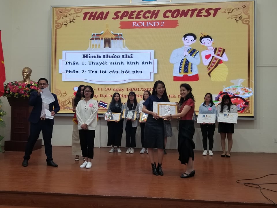 ไฮไลท์ของงานคือการประกวดกล่าวสุนทรพจน์ภาษาไทยที่มีการเข้าร่วมของนักศึกษา 10 คน นางสาวมรกต เจนมธุกร อัครราชทูตสถานทูตไทย ณ กรุงฮานอยได้ประเมินว่า“กิจกรรมวันนี้คือกิจกรรมสุดยอด ต้องบอกว่า ยอดเยี่ยมมากๆ นอกจากจะทำให้เราสองชาติเข้าใจกันแล้ว ยังจะทำให้เราเห็นว่า จริงแล้ว ประเทศไทยกับประเทศเวียดนามมีความใกล้ชิดกันมาก ประเทศเราสองประเทศเป็นประเทศที่มีภาษาที่มีวรรณยุกต์ ซึ่งเป็นเอกลักษณ์ ซึ่งแทบจะไม่มีประเทศไหนในโลกที่มีวรรณยุกต์ ยกเว้นไทยกับเวียดนาม เราใกล้ชิดกันขนาดนี้ ทำไมเราจะยิ่งเสริมความสัมพันธ์กันให้แน่นแฟ้นมากกว่านี้ไม่ได้ เมื่อพูดถึงภาษา เรามีความใกล้เคียงกันมาก เพราะเป็นภาษาที่มีวรรณยุกต์ ของไทยมี 5 วรรณยุกต์ ของเวียดนามมี 6 เพราะฉะนั้นเราคุยกันในเรื่องความคล้ายกันได้มากมาย แล้วสามารถคุยถูกคอกันได้มากๆ”