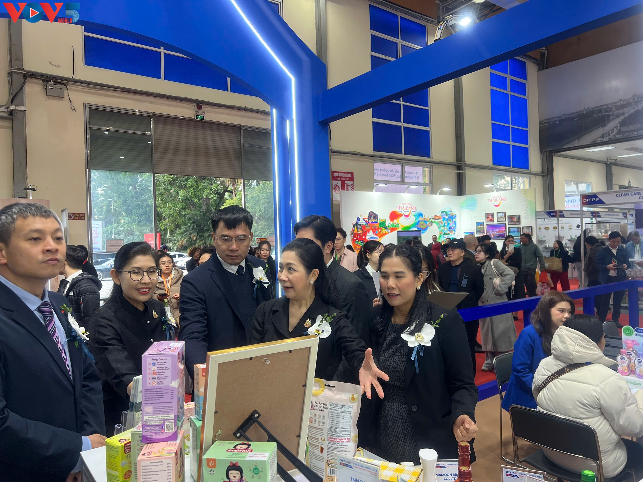 นางสาว อุรวดี ศรีภิรมย์ เอกอัครราชทูตไทย ณ กรุงฮานอย พร้อมบรรดาผู้แทนเยี่ยมชมบูธในงาน |