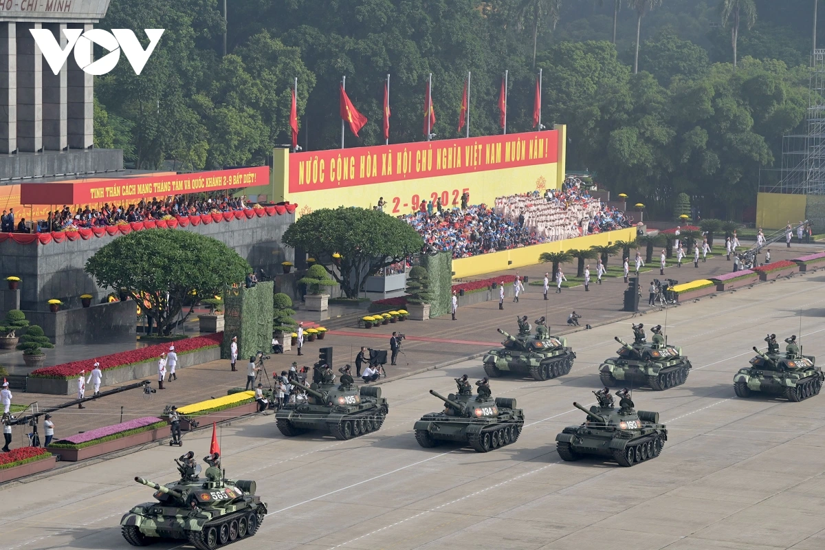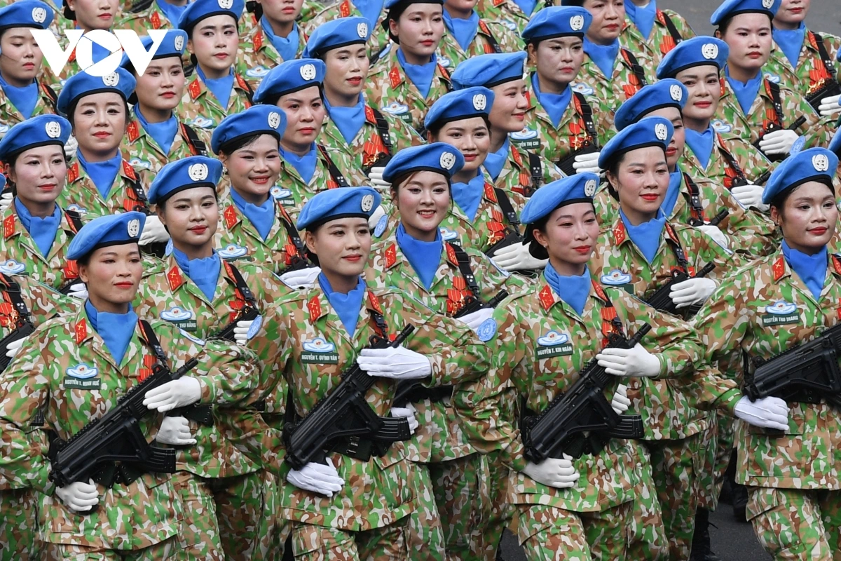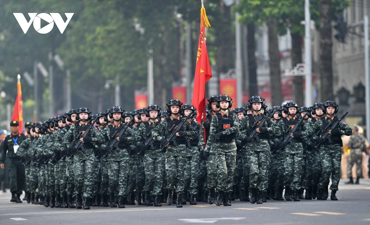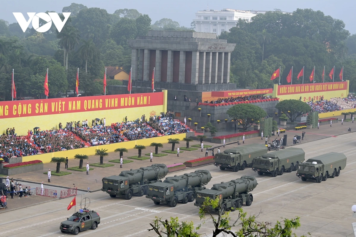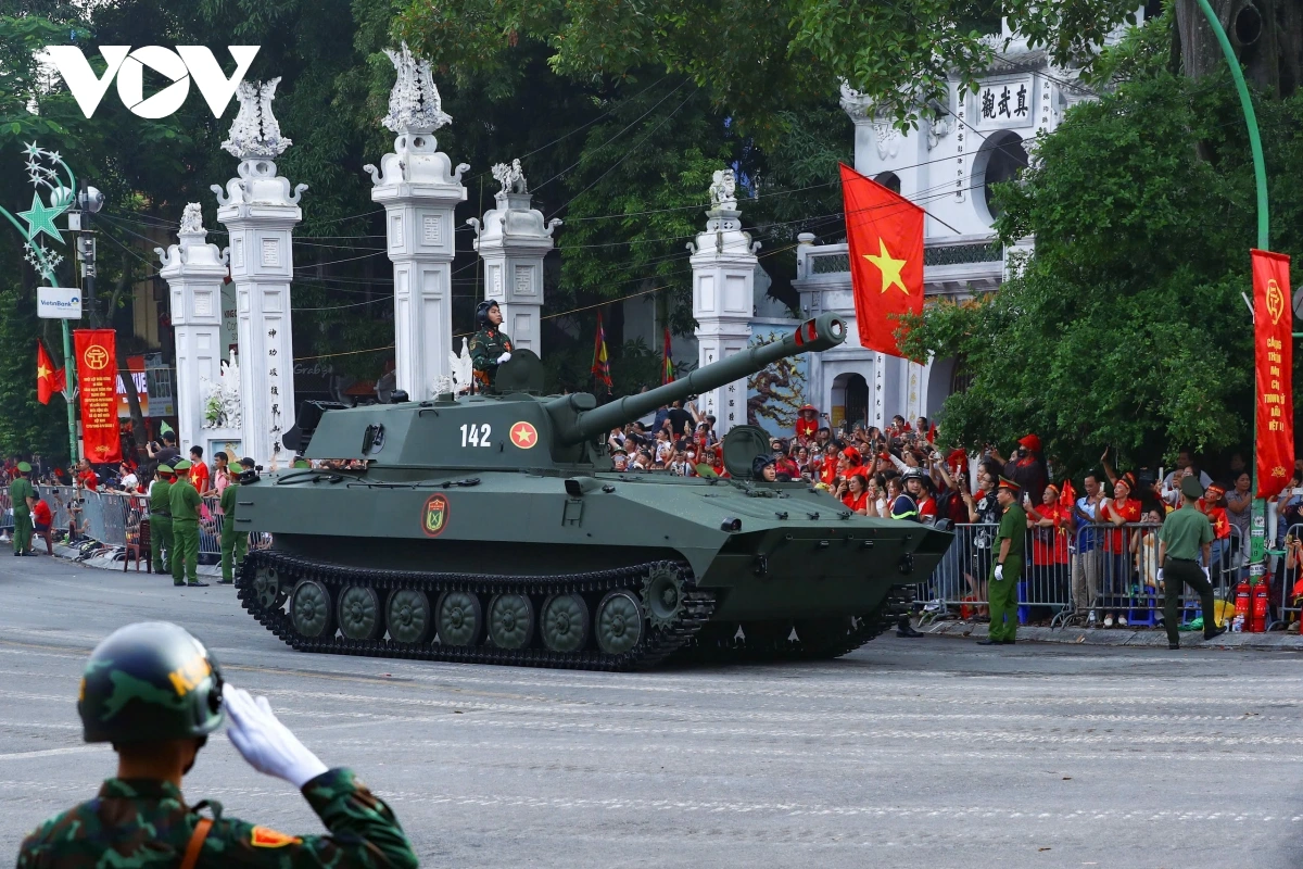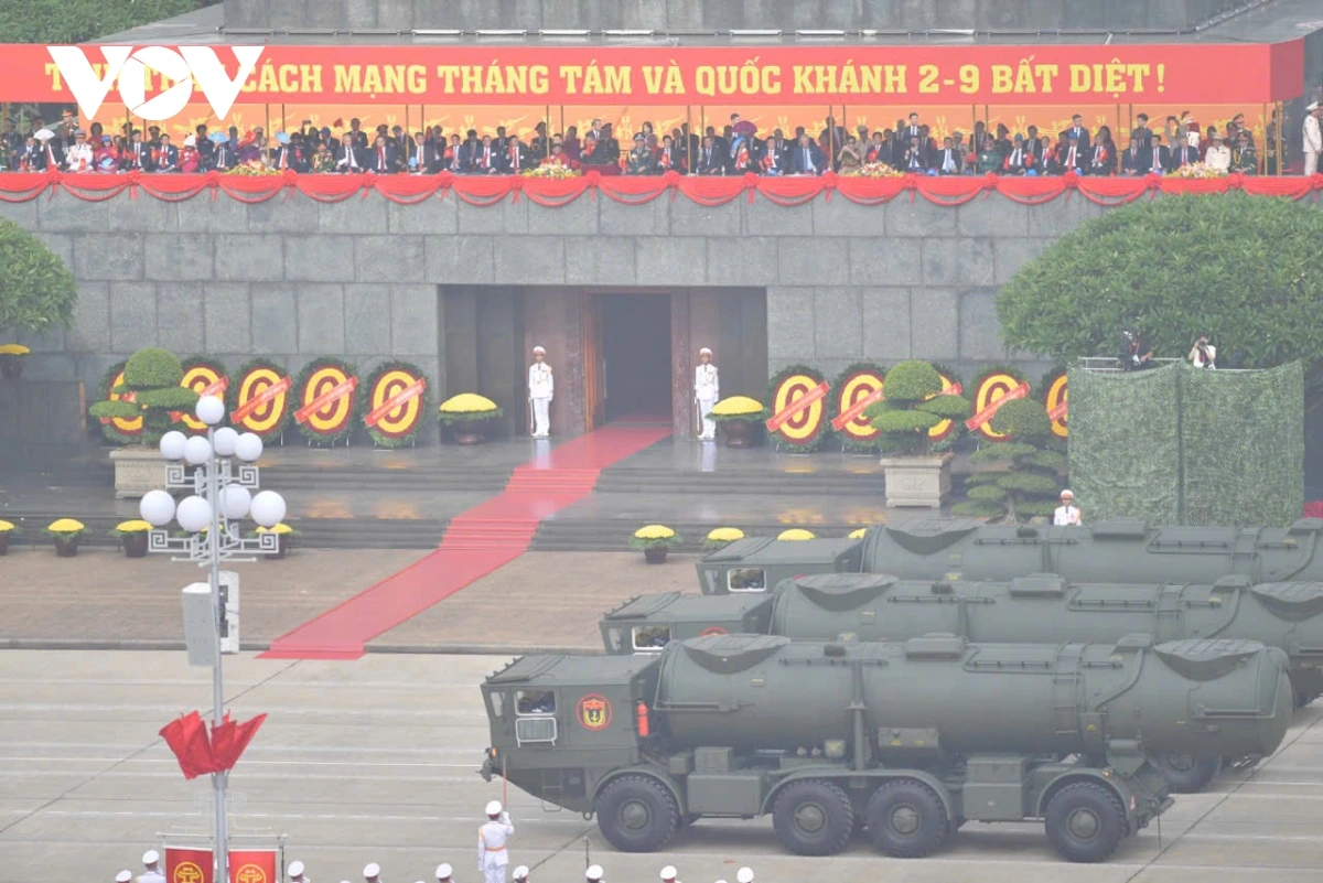 หลังการกล่าวสุนทรพจน์ของเลขาธิการใหญ่พรรคก็เป็นการเริ่มพิธีเดินสวนสนามและขบวนพาเหรด โดยมีผู้เข้าร่วมประมาณ 16,000 คน รวมขบวนพาเหรด 79 ขบวน กองทัพอากาศประชาชนเวียดนามได้เป็นกองกำลังเปิดพิธีสวนสนาม ต่อมาเป็นขบวนพาเหรดของกองกำลังเกียรติยศ กองทัพประชาชนเวียดนาม กองทัพต่างประเทศ กองกำลังอาสาสมัคร กองกำลังจรยุทธ์ และตำรวจ ขบวนพาเหรดของยานพาหนะทางทหาร ปืนใหญ่ รถตำรวจพิเศษ และขบวนขององค์กรมวลชน