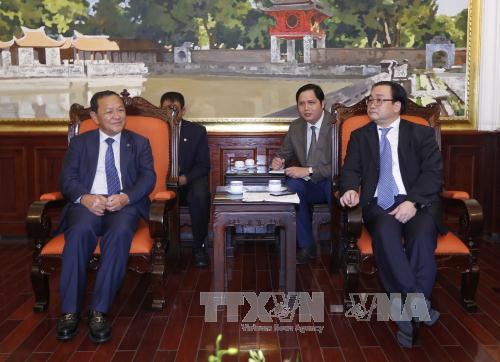 ![]() นาย หว่างจุงหาย เลขาธิการพรรคสาขากรุงฮานอยได้ให้การต้อนรับนาย ปา โสชีตวง ผู้ว่าราชการกรุงพนมเปญ (Photo: vietnamplus.vn)