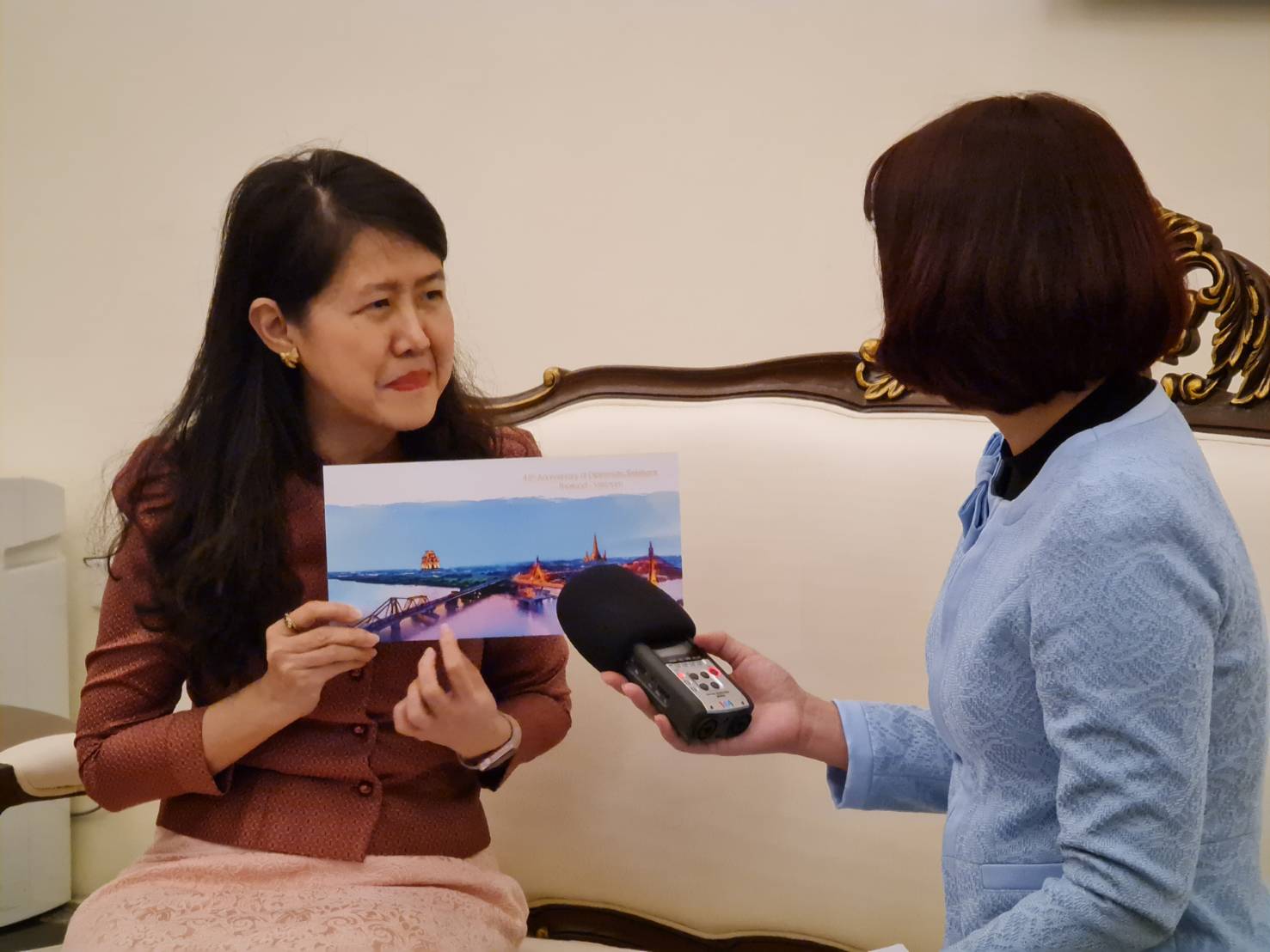 นางสาวมรกต เจนมธุกร อัครราชทูตไทย ณ กรุงฮานอย ให้สัมภาษณ์ผู้สื่อข่าวของสถานีวิทยุเวียดนาม |