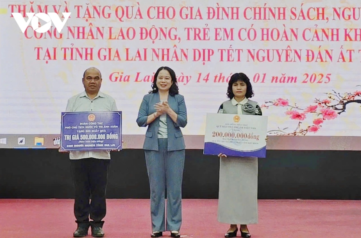 รองประธานประเทศ หวอถิแอ๊งซวน มอบของขวัญให้แก่ผู้ยากจน ครอบครัวที่อยู่ในเป้านโยบาย แรงงาน กรรมกรในจังหวัดยาลาย |