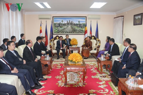 ส่วนผู้นำกัมพูชาได้ชื่นชมผลสำเร็จของเวียดนามในภารกิจการเปลี่ยนแปลงใหม่ประเทศและผลการแลกเปลี่ยนคณะผู้แทนระดับสูงระหว่างคณะกรรมการตรวจสอบส่วนกลางของสองพรรรค โดยยืนยันว่า ความสัมพันธ์ระหว่างสองประเทศเป็นสมบัติอันล้ำค่าที่ทั้งสองฝ่ายควรธำรงและสืบทอดให้แก่คนรุ่นหลัง.