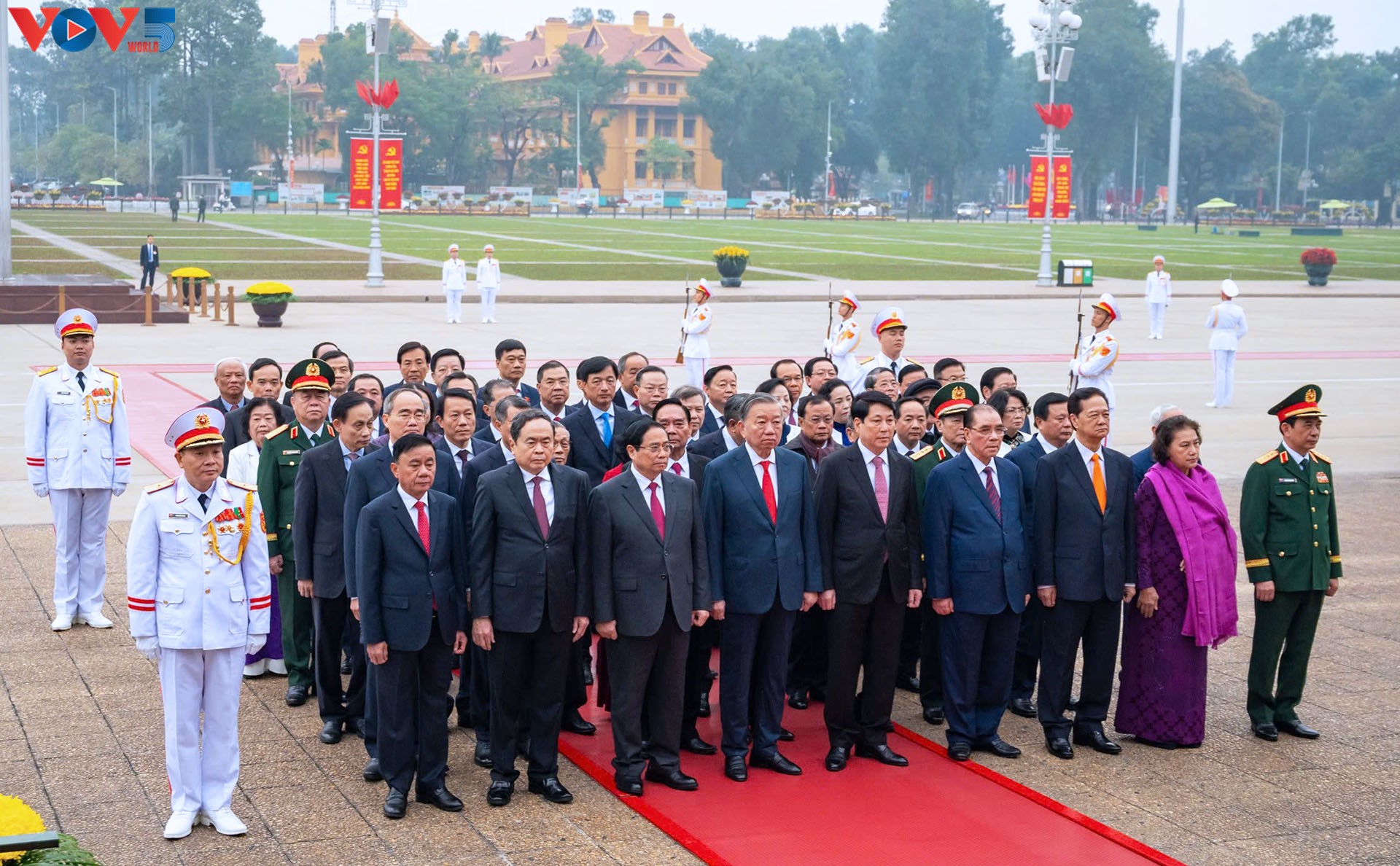 ผู้นำพรรคและรัฐเข้าเคารพศพประธานโฮจิมินห์ในโอกาสรำลึกครบรอบ 96 ปีวันก่อตั้งพรรคคอมมิวนิสต์เวียดนาม |
