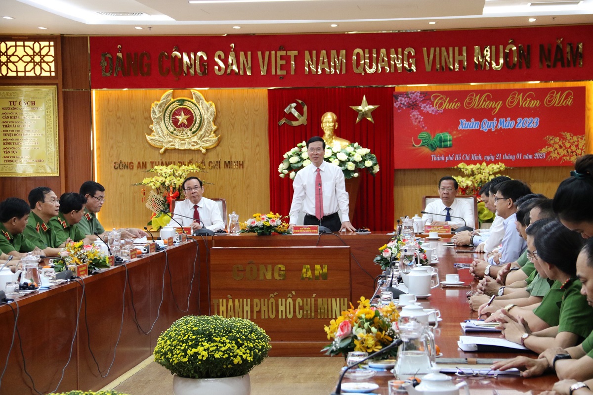 นายหวอวันเถืองได้ไปเยี่ยมและอวยพรปีใหม่กองกำลังตำรวจนครโฮจิมินห์ |