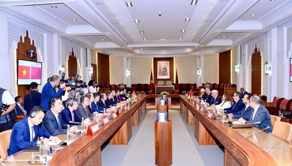 ในการเจรจาหลังพิธีต้อนรับ ประธานสภาแห่งชาติ เจิ่นแทงเหมิน ได้เผยว่า ใน 5 เดือนแรกของปีนี้ มูลค่าการค้าต่างตอบแทนได้บรรลุผลที่น่าประทับใจคือกว่า 320 ล้านดอลลาร์สหรัฐ มากกว่าปี 2024 แต่เพื่อให้ทั้งสองประเทศใช้ศักยภาพจากตลาดของกันได้ดีขึ้น ประธานสภาแห่งชาติ เจิ่นแทงเหมิน ได้เสนอให้ทั้งสองฝ่ายผลักดันการเชื่อมโยงสถานประกอบการ พิจารณาการร่วมมือในการผลิตและการส่งออกไปยังตลาดของประเทศที่ 3 กระชับความร่วมมือด้านอุตสาหกรรมเชิงยุทธศาสตร์ เช่น การแปรรูปสินค้าเกษตร การผลิตปุ๋ยและพลังงานหมุนเวียน เป็นต้น สำหรับปัญหาระดับภูมิภาคและโลกที่ทั้งสองประเทศต่างให้ความสนใจ ประธานสภาแห่งชาติ เจิ่นแทงเหมิน เสนอให้โมร็อกโกสนับสนุนจุดยืนของอาเซียนและเวียดนามในทะเลตะวันออก โดยเฉพาะในการแก้ไขการพิพาททางทะเลด้วยสันติวิธีตามกฎหมายสากล