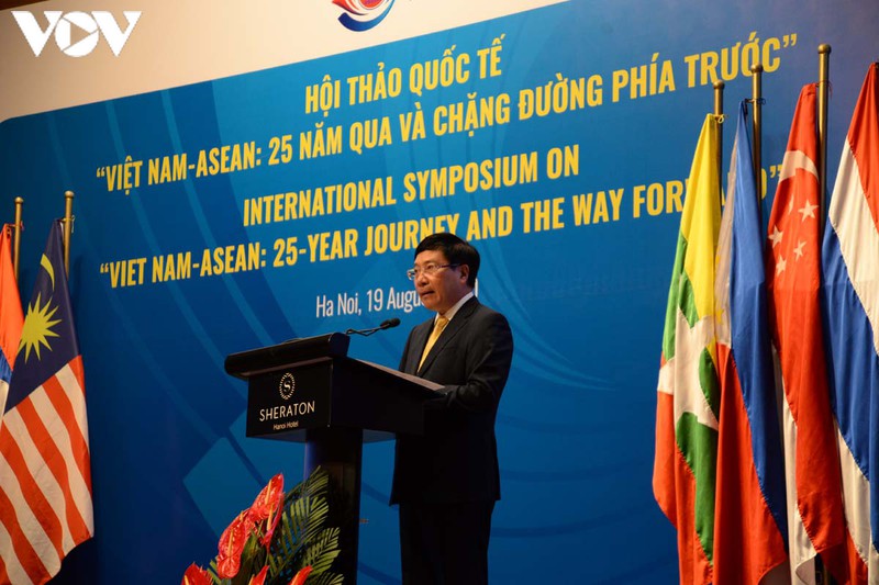 ในการกล่าวปราศรัยในการสัมมนา นาย ฝ่ามบิ่งมิงห์ รองนายกรัฐมนตรีและรัฐมนตรีว่าการกระทรวงการต่างประเทศเวียดนามได้ยืนยันว่า ในช่วง25 ปีที่ผ่านมา เวียดนามมีความเชื่อมโยงกับอาเซียนและอาเซียนได้กลายเป็นครอบครัวที่มีเวียดนามเป็นหนึ่งในสมาชิก สำหรับส่วนร่วมของเวียดนามในอาเซียน รองนายกรัฐมนตรี ฝ่ามบิ่งมิงห์ได้ย้ำว่า “ในเวลาที่ผ่านมา เวียดนามภูมิใจที่ได้มีส่วนร่วมอย่างเข้มแข็งต่อการพัฒนาของอาเซียน ไม่ว่าจะเป็นการเสร็จสิ้นเป้าหมายสร้างสรรค์กลุ่มอาเซียนที่มีทั้ง 10 ประเทศในภูมิภาค ผลักดันและปฏิบัติเป้าหมายการจัดตั้งประชาคมอาเซียน สร้งสรรค์กฎบัตรอาเซียนไปจนถึงการส่งเสริมบทบาทการเป็นศูนย์กลางของภูมิภาคและมีบทบาทสำคัญบนเวทีโลก นับตั้งแต่ที่เข้าเป็นสมาชิกของอาเซียน เวียดนามได้พยายามศึกษาและผสมผสานเข้ากับประเทศต่างๆในกลุ่ม โดยตระหนักได้ดีว่า จะเป็นสมาชิกที่กระตือรือร้น เป็นฝ่ายรุก มีความรับผิดชอบและมีส่วนร่วมอย่างเข้มแข็งต่อการพัฒนาอย่างยั่งยืนของอาเซียน”.
