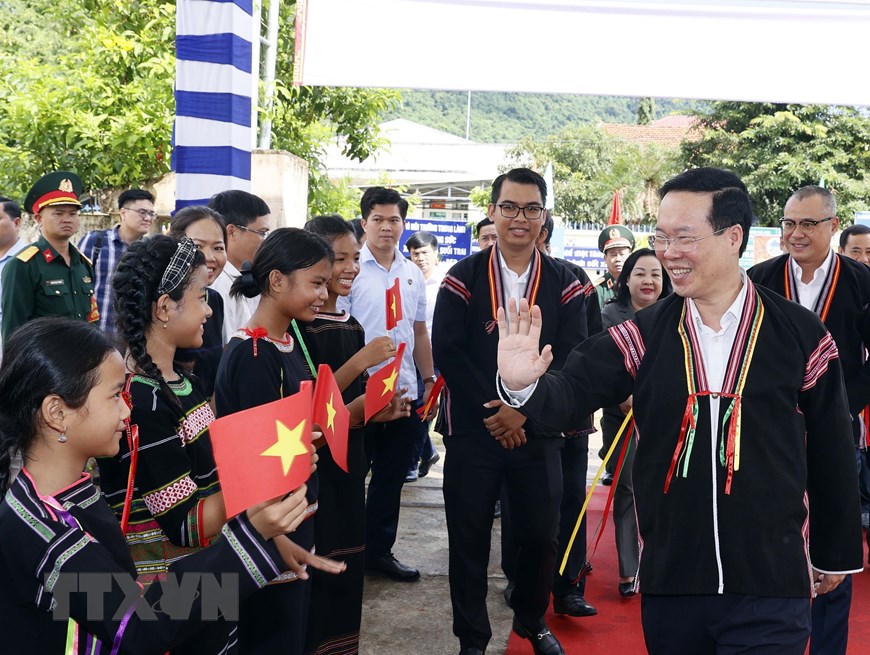 ในโอกาสนี้ ประธานประเทศ หวอวันเถือง ผู้บริหารของแนวร่วมปิตุภูมิเวียดนามและทางการจังหวัดฟู้เอียนได้มอบของขวัญให้แก่เจ้าหน้าที่บริหารการศึกษา ครู ตัวแทนชนกลุ่มน้อยที่ได้รับการนับถือและนักเรียนดีเด่น.