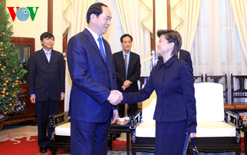 (VOVWorld)-บ่ายวันที่๒๔มกราคม ณ ทำเนียบประธานประเทศ ท่าน เจิ่นด่ายกวาง ประธานประเทศเวียดนามได้ให้การต้อนรับนาง แคทเธอรีหว่อง เอกอัครราชทูตสิงคโปร์ประจำเวียดนาม