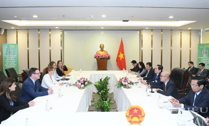 ในบ่ายวันเดียวกัน ในการให้การต้อนรับนาง Nathalie Roy ประธานสภาผู้แทนราษฎรรัฐ Québec รองเลขาธิการคนที่หนึ่งสมัชชารัฐสภาของกลุ่มประเทศที่ใช้ภาษาฝรั่งเศสหรือ APF ประธานสภาแห่งชาติ เจิ่นแทงเหมิน ได้เสนอให้ นาง Nathalie Roy สนับสนุนแถลงการณ์เกิ่นเทอเกี่ยวกับความร่วมมือด้านการเกษตรที่ยั่งยืน ความมั่นคงด้านอาหาร การรับมือการเปลี่ยนแปลงของสภาพภูมิอากาศ พร้อมทั้งยืนยันว่า เวียดนามให้ความสำคัญต่อตวามสัมพันธ์หุ้นส่วนในทุกด้านกับแคนาดา มีความประสงค์ที่จะร่วมกับแคนาดากระชับความสัมพันธ์ในทุกด้าน อีกทั้งย้ำว่า เวียดนามมีความประสงค์ที่จะส่งเสริมความสัมพันธ์ระหว่างรัฐสภาทั้งสองประเทศ ผลักดันการพบปะสังสรรค์ระดับประชาชน ความร่วมมือระหว่างสถานประกอบการและท้องถิ่นต่างๆ ความร่วมมือในฟอรั่มรัฐสภาพหุภาคีต่างๆ ส่วนนาง Nathalie Roy แสดงความประสงค์ว่า เวียดนามจะส่งคณะฯเข้าร่วมการประชุมสส.สตรีและเครือข่ายสส.รุ่นใหม่ในรัฐ Québec รัฐสภาทั้งสองประเทศจะผลักดันการพบปะสังสรรค์และการแลกเปลี่ยนประสบการณ์.