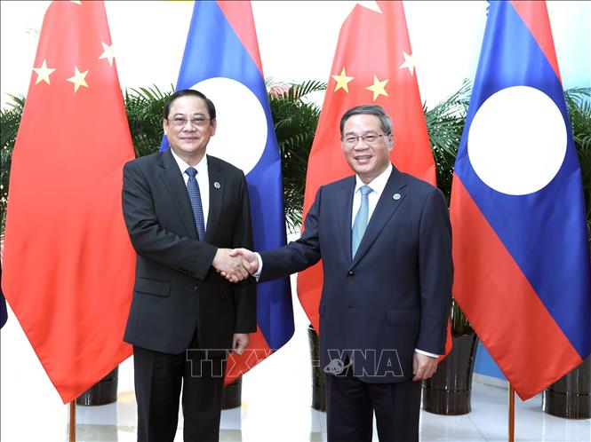 นายกรัฐมนตรีจีน หลี่เฉียง และนาย สอนไซ สีพันดอน นายกรัฐมนตรีลาว (VNA) |